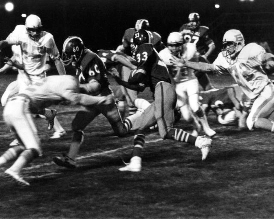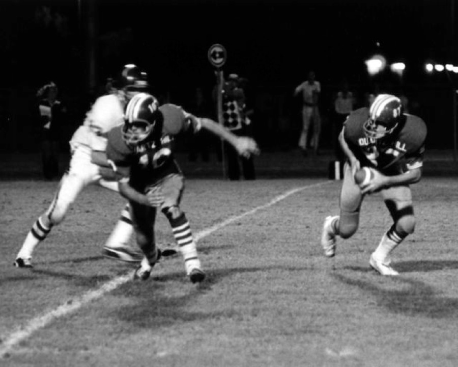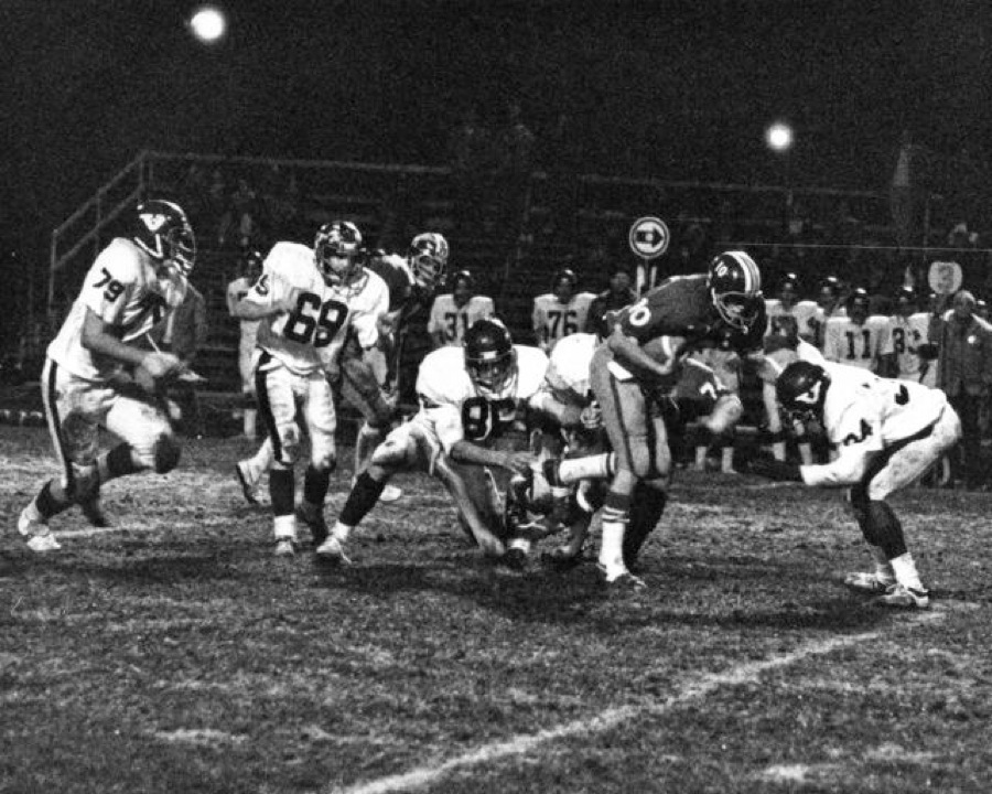 The black and white photos here were shot with the Nikon and an 80 - 200 mm zoom lens. Sports lighting on football fields and in gymnasiums in the 70s was not nearly as bright as it is today, so I experimented with pushing Tri-X film to its max and then used recording film for even higher ASA values. The grain (noise) in those photos was very noticeable but it was sharp enough to make for good newspaper reproduction. Those higher speeds allowed me to capture unique (at the time) images from the middle of the field, something no one could do with flash photography.